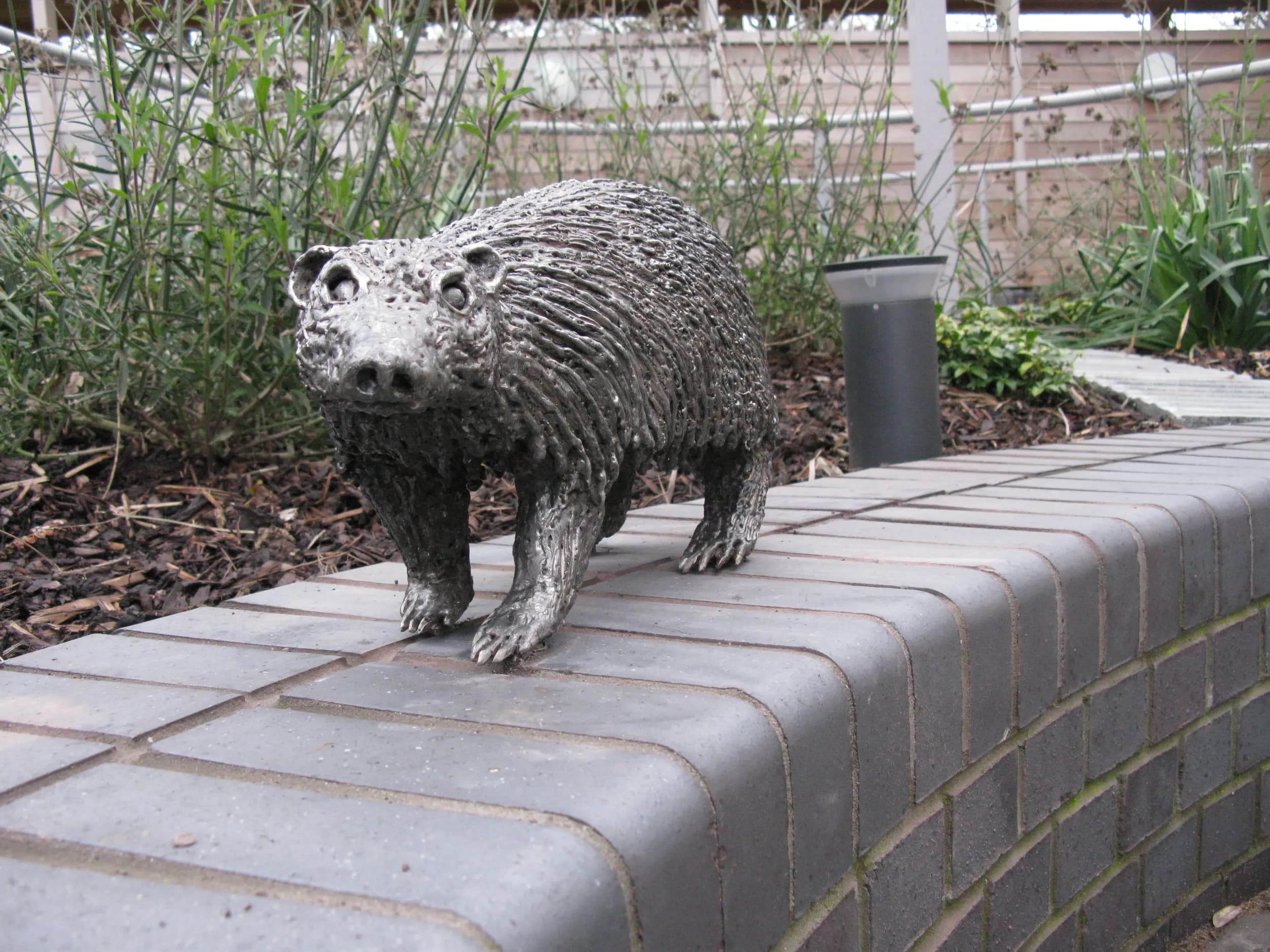 The Badger: Captured mid-stride as it navigates the brickwork, the badger connects the children to the native wildlife found in the surrounding fields.