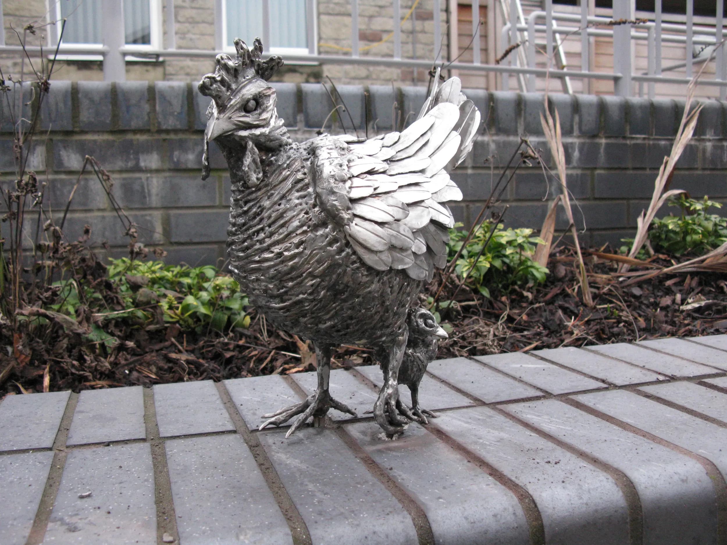 A trio of bespoke stainless steel sculptures commissioned by Beacon Rise Primary School in Kingswood. Featuring a badger, a chicken and chick, and a fan-tailed dove to inspire students and celebrate Bristol's heritage.