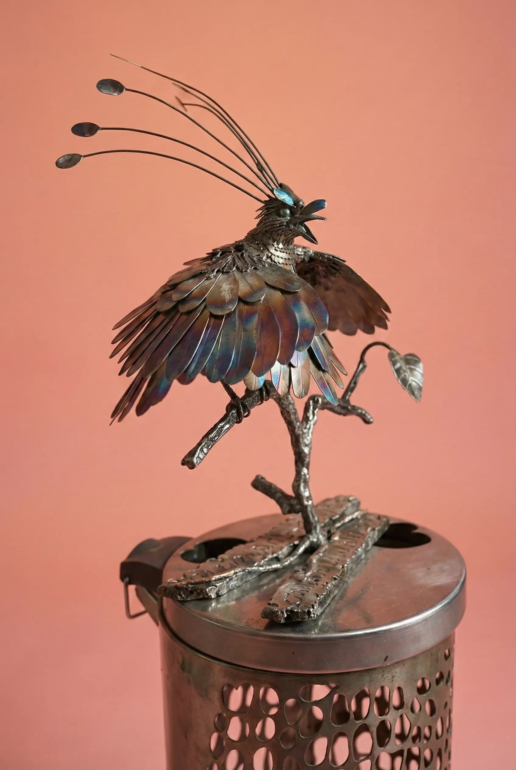 In a nod to the themes of conservation and renewal, the bird was entirely sculpted from recycled stainless steel salvaged from an old bin. The metal was reworked to capture the delicate, fan-like feathers and the dramatic display posture that defines the species. This piece holds a special place in my heart, marked by a cherished hand-written letter of thanks from Sir David himself.