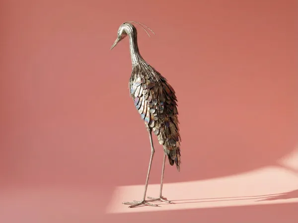 The Great Blue Heron is the embodiment of stillness, often found standing statue-like in the shallows waiting for prey. This life-sized sculpture captures that signature posture—neck elongated, head high, and dagger-like bill poised for action.