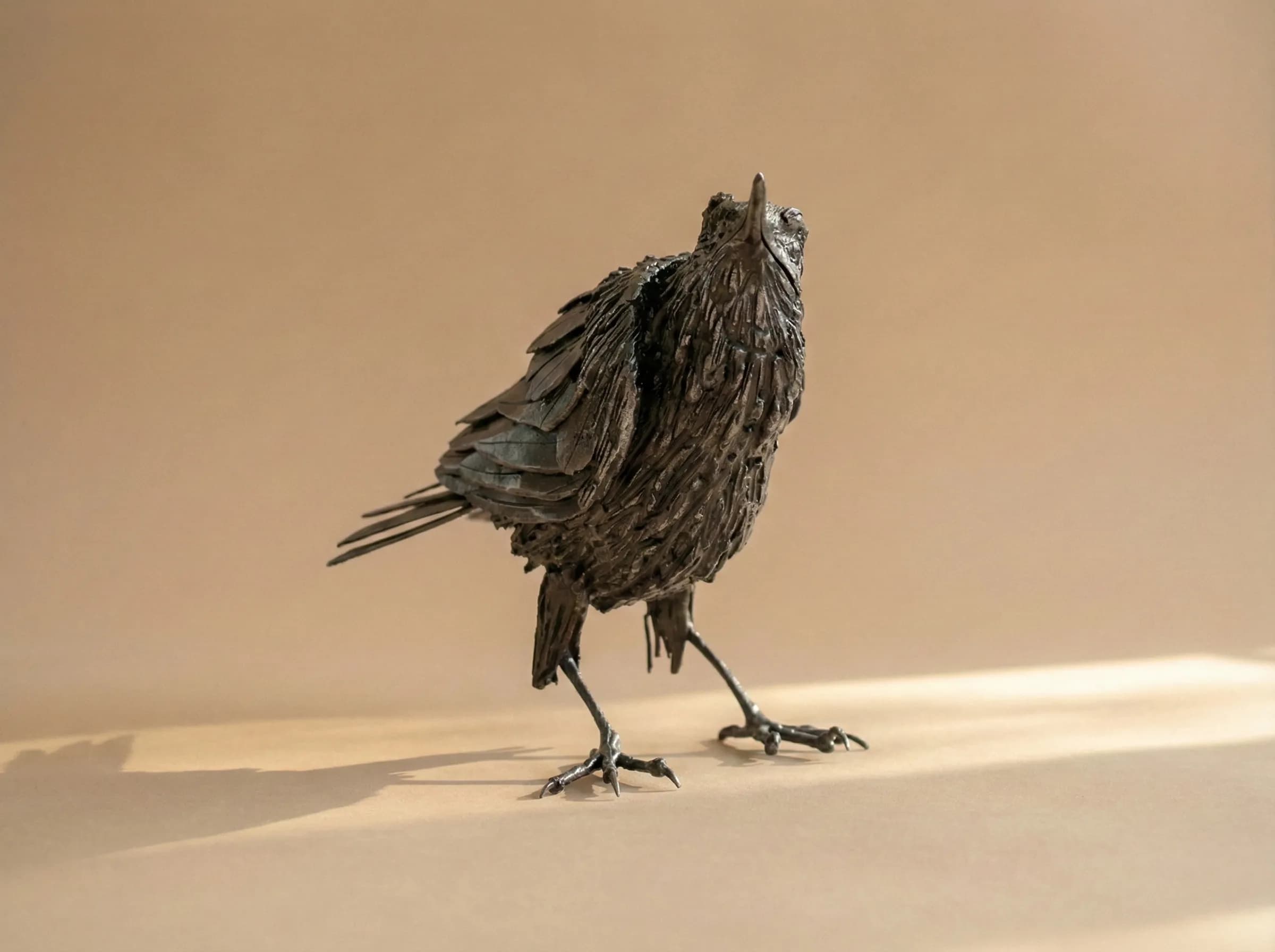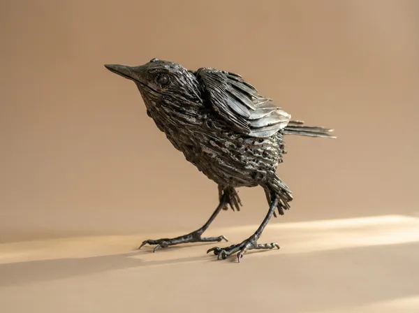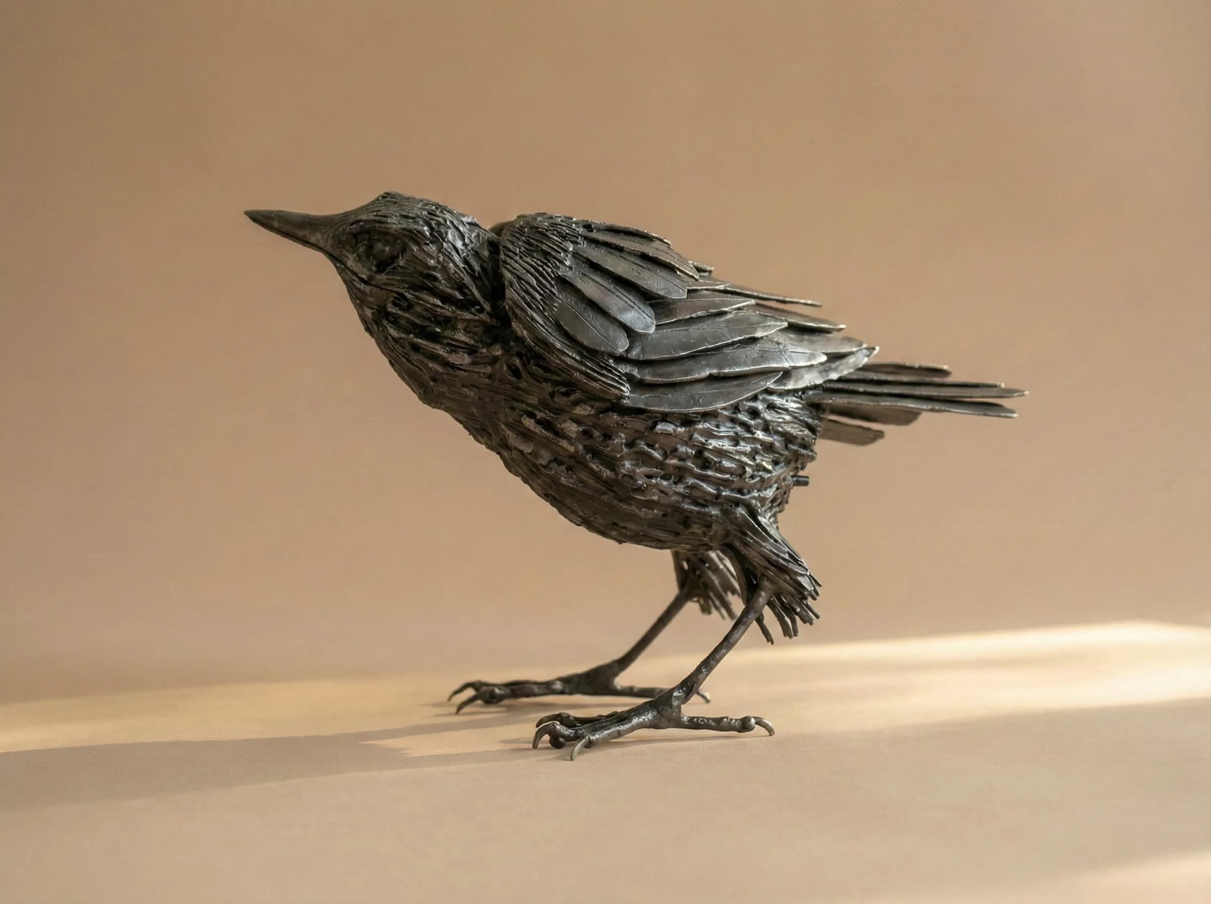 Sculpture of a Common Blackbird. Features a textured, bead-welded body and smooth layered wings to capture the bird's iconic silhouette.