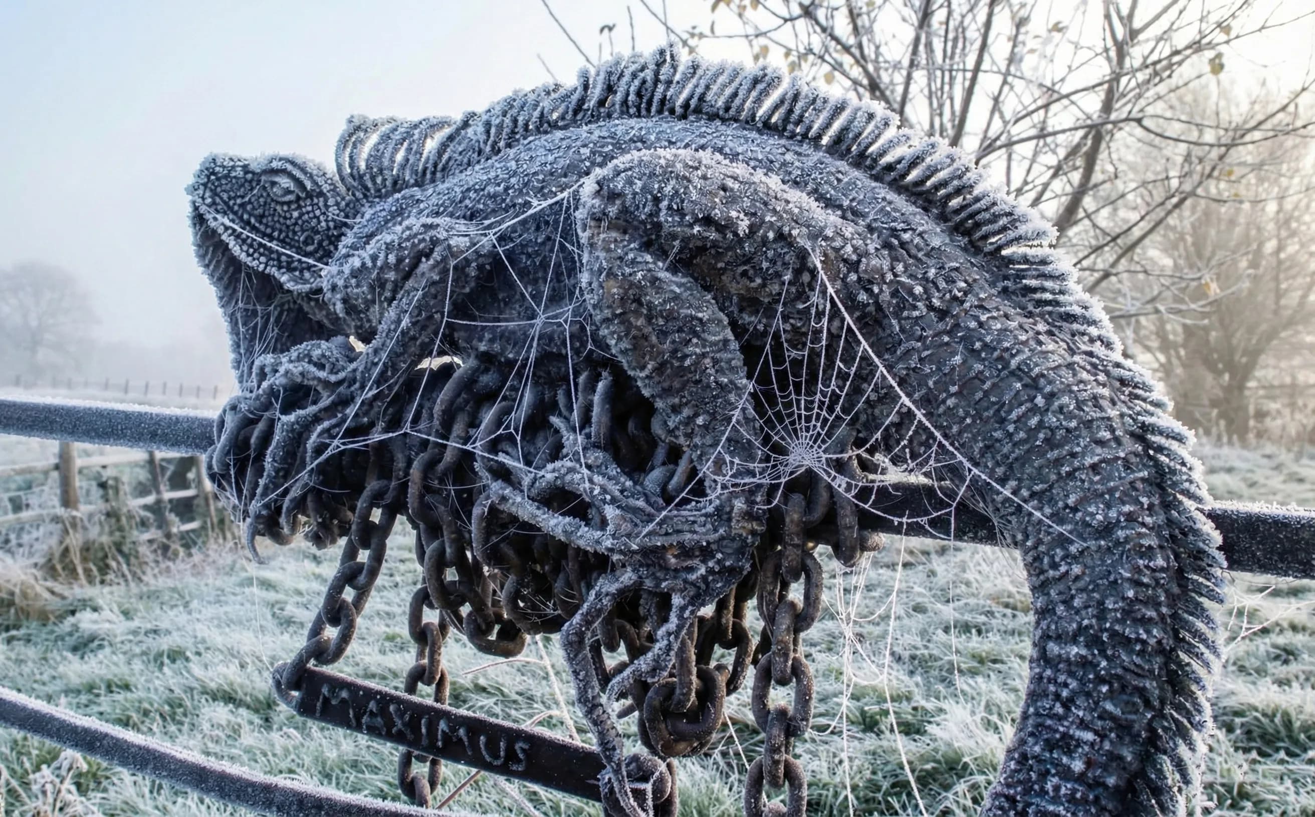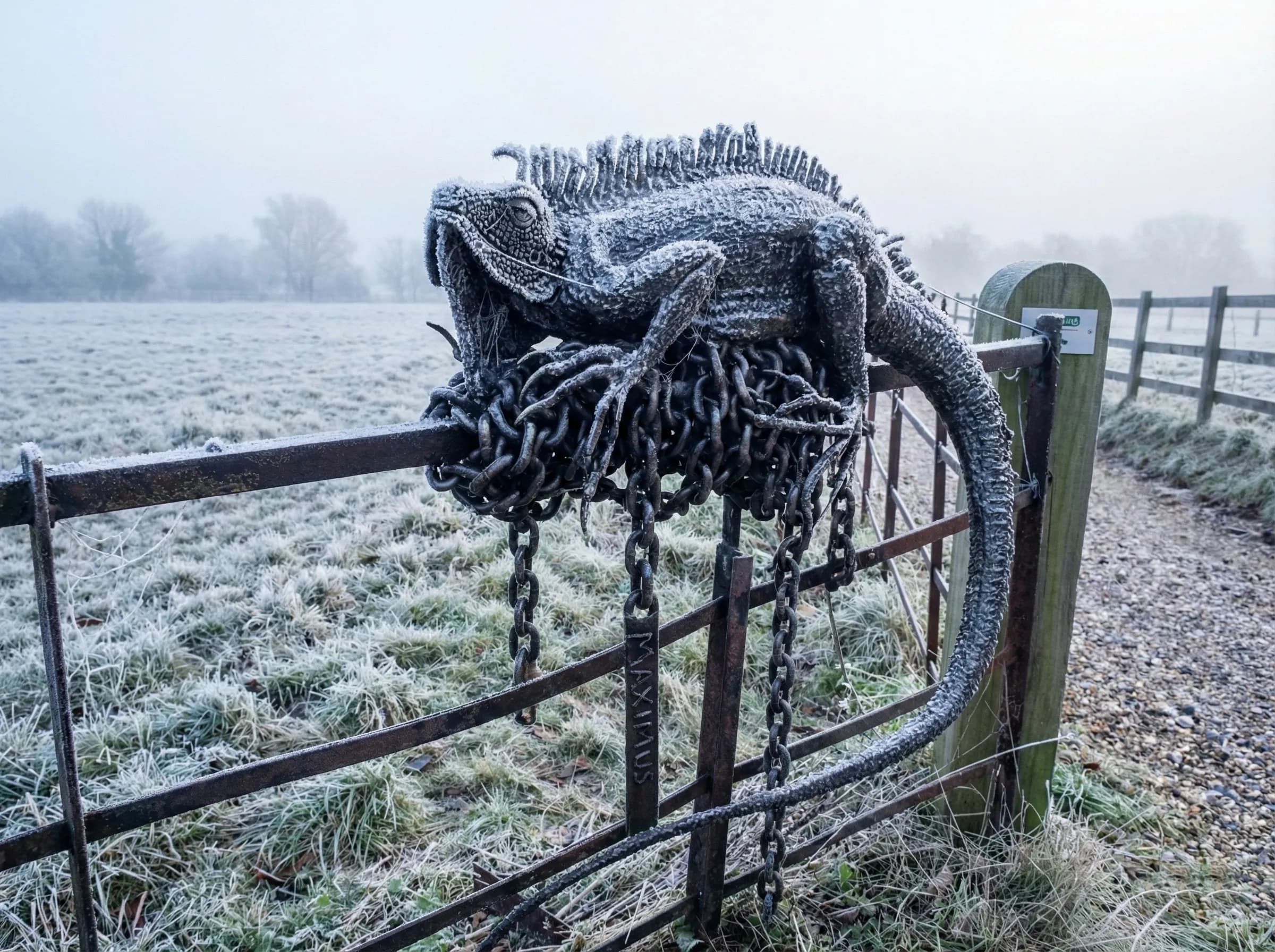 In this piece, I utilized the natural strength and texture of steel to recreate the iguana's complex anatomy, from the large circular scale on its cheek to the long, powerful tail. Designed to integrate into the landscape, Maximus sits perched atop the property's boundary railings, serving as a permanent guardian of the grounds. Whether catching the summer sun or coated in a thick winter frost, the sculpture's metallic form provides a sharp, year-round contrast to the shifting seasons of the English countryside.